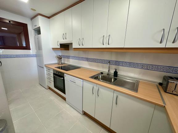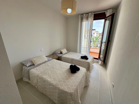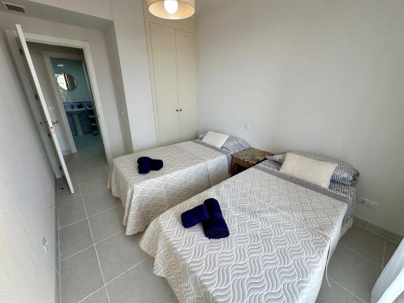 Con 72 m² construidos, este hogar cuenta con dos dormitorios espaciosos, ambos con acceso a un encantador balcón, y dos baños completos, uno de ellos en suite con el dormitorio principal. El apartamento está completamente amueblado para tu comodidad. La urbanización ofrece seguridad con un conserje y control de accesos, además de tres piscinas y extensas áreas de césped para disfrutar del sol.