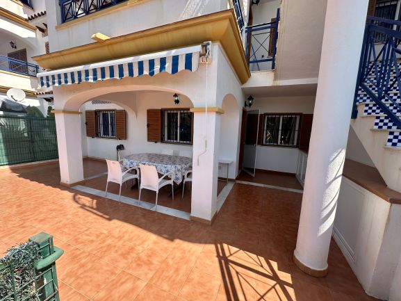 Apartamento turístico ubicado en la exclusiva urbanización Veramar 5, en la zona del Playazo de Vera, a escasos metros del mar y con acceso directo a la playa desde la propia comunidad.
