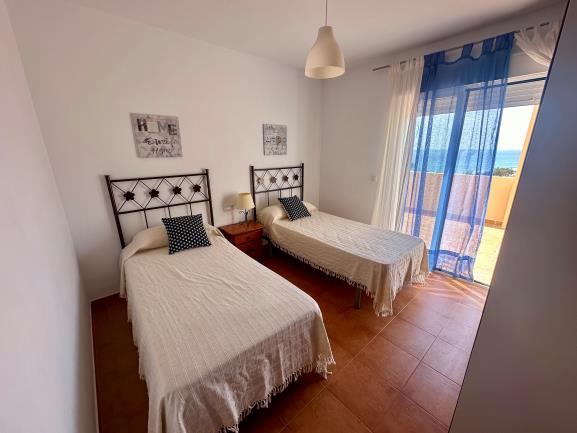 El apartamento situado en una segunda segunda planta sin ascensor, cuenta con dos acogedoras habitaciones. La decoración sencilla pero elegante crea un ambiente relajante para un sueño reparador después de un día bajo el cálido sol de Mojácar. Tiene dos baños, uno de ellos está ubicado en Suite.