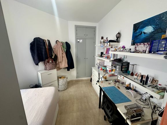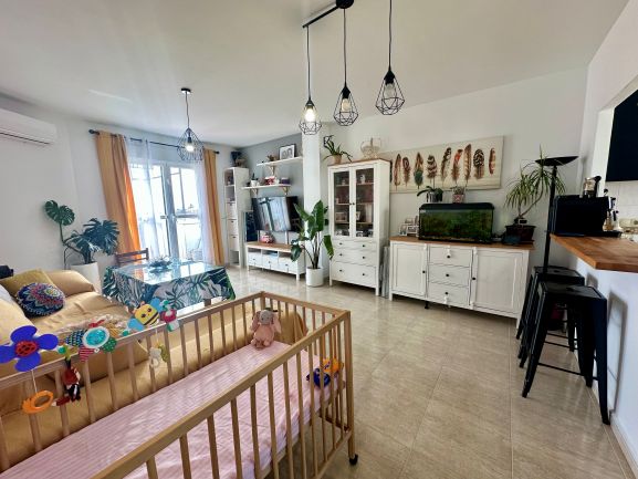 El salón comedor con cocina integrada es el corazón del hogar, ideal para compartir momentos inolvidables. Además, cuenta con dos encantadoras terrazas donde podrás relajarte y disfrutar del aire libre. La propiedad, seminueva y en excelente estado, incluye una plaza de garaje y un trastero, ofreciendo soluciones de almacenamiento adicionales.