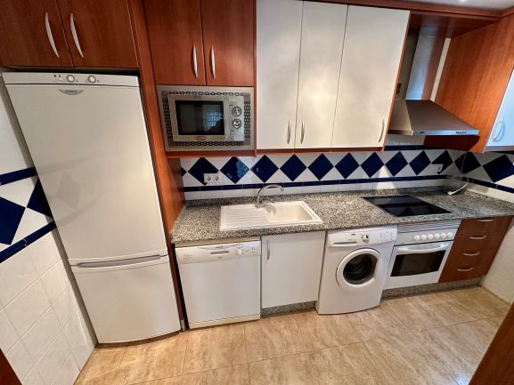 El interior del apartamento es acogedor y funcional. El salón-comedor está equipado con aire acondicionado, y la cocina completamente amueblada y equipada hará que cocinar no sea un problema desde el primer día. Los armarios empotrados en los dormitorios ofrecen un amplio espacio de almacenamiento.