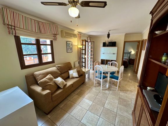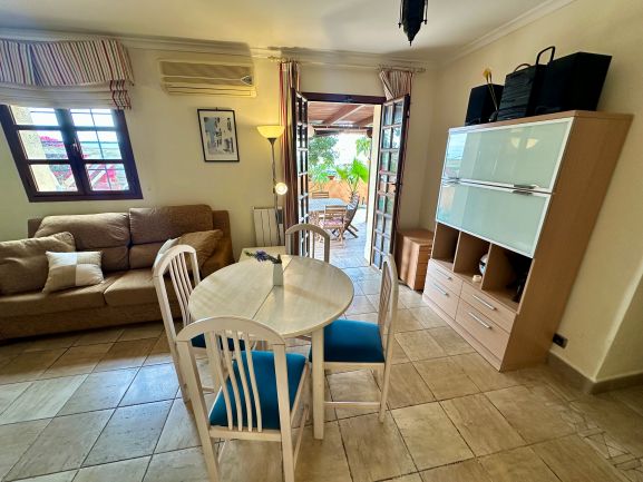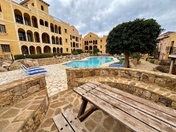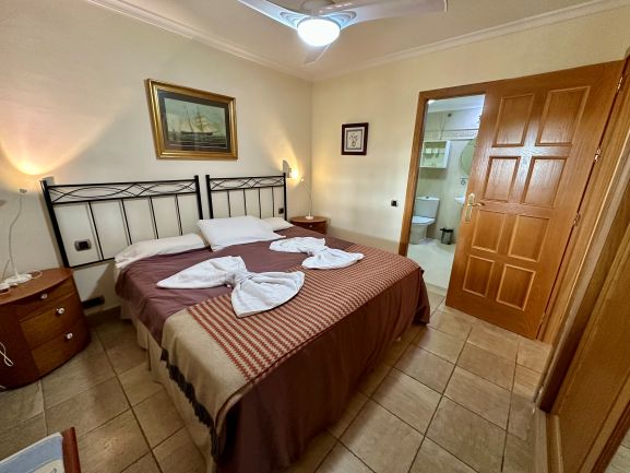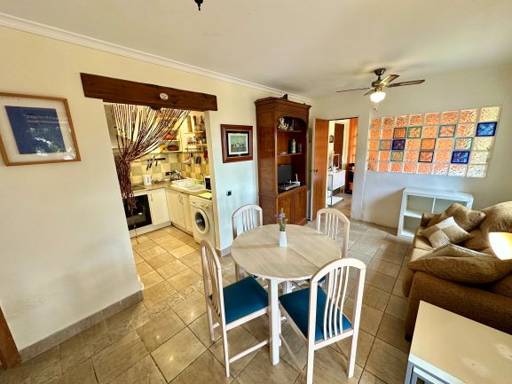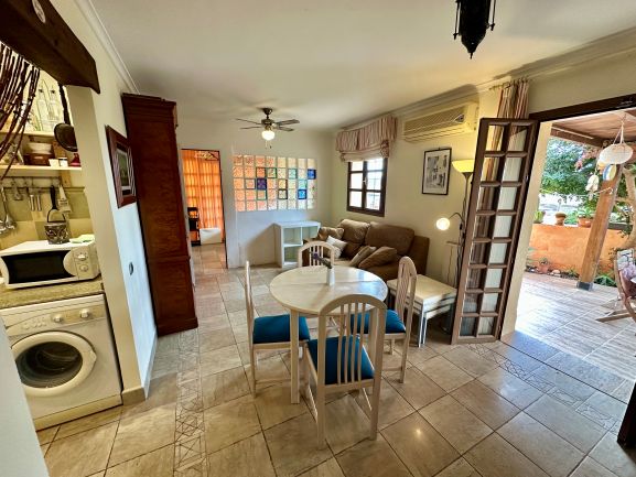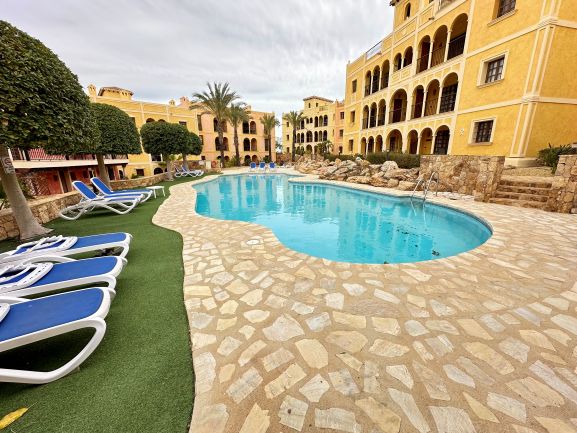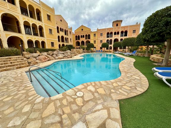 Este espectacular apartamento en planta de baja te ofrece una experiencia de vida de lujo en una urbanización con seguridad las 24 horas. Disfruta de un entorno exclusivo con acceso a piscinas abiertas todo el año y una comunidad acogedora, mayoritariamente británica. Con 64 m² construidos y 58 m² útiles, este hogar cuenta con un dormitorio, dos baños y armarios empotrados, todo en perfecto estado.