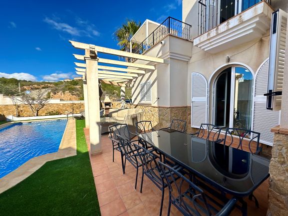 La propiedad está equipada con armarios empotrados que optimizan el espacio y un trastero perfecto para el almacenamiento. La calefacción eléctrica asegura confort durante todo el año. La orientación oeste permite disfrutar de espectaculares puestas de sol desde las amplias zonas exteriores, donde se encuentra una piscina, un jacuzzi y una zona de barbacoa, perfectos para relajarse o celebrar momentos inolvidables con amigos y familiares.